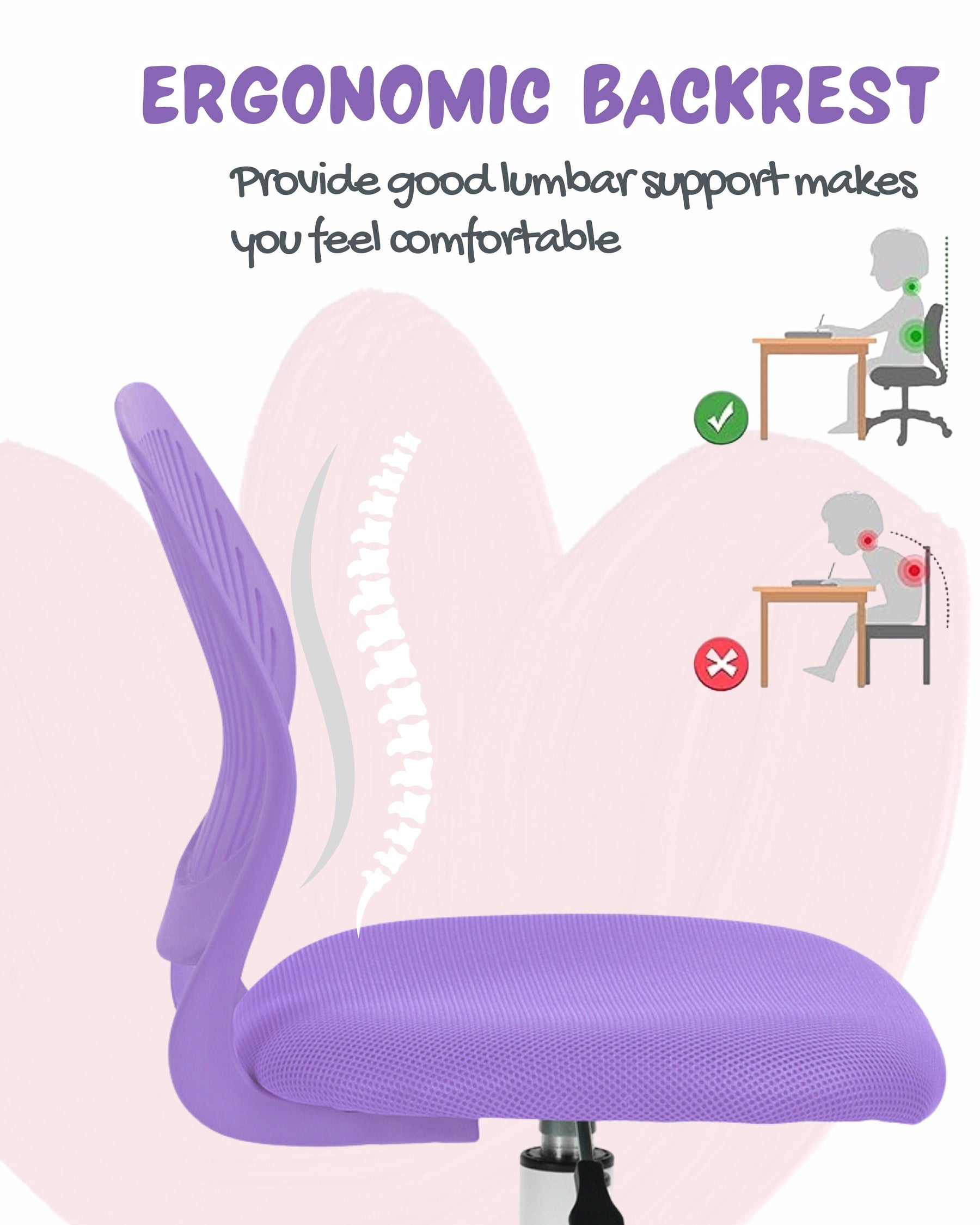 • The chair provides color, whimsy and lumbar support for correct posture while working.