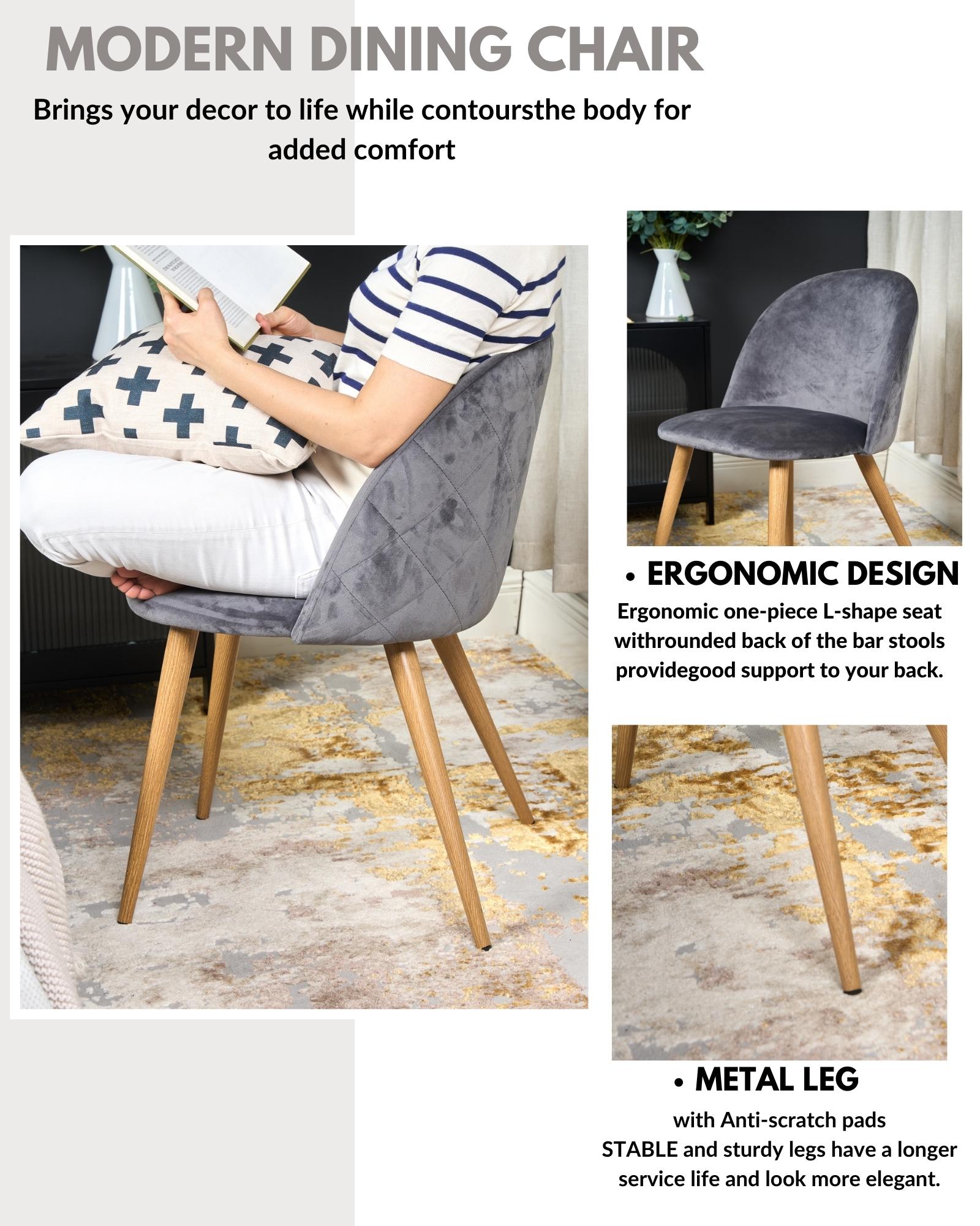 • The chairs are crafted from a plush velvet blend that feels soft.