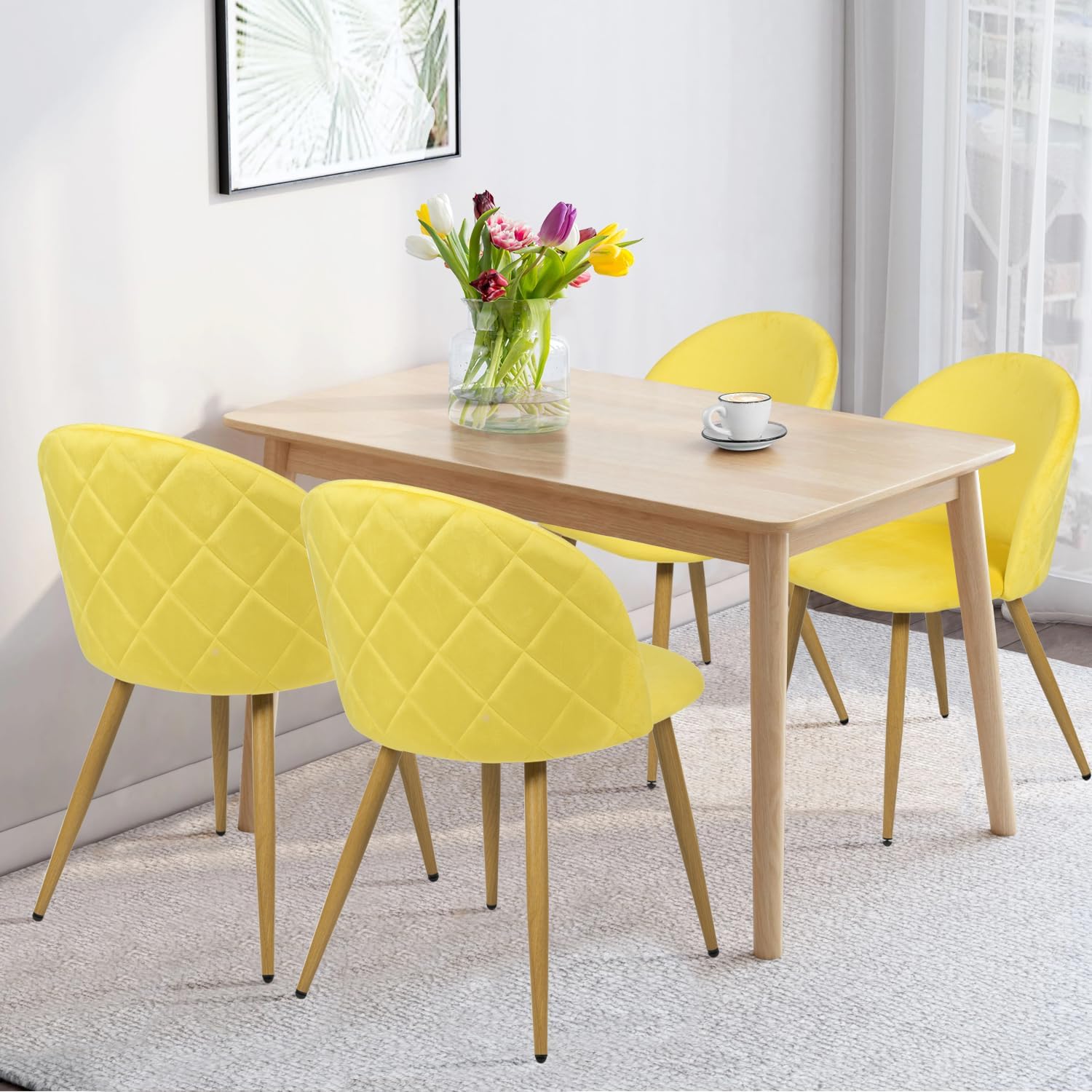 FurnitureR Polsterstuhl aus Samt, mittelhohe Rückenlehne, armlos, mit Holzbeinen, für Küche, Schlafzimmer und Wohnzimmer, 1 Stück, Gelb