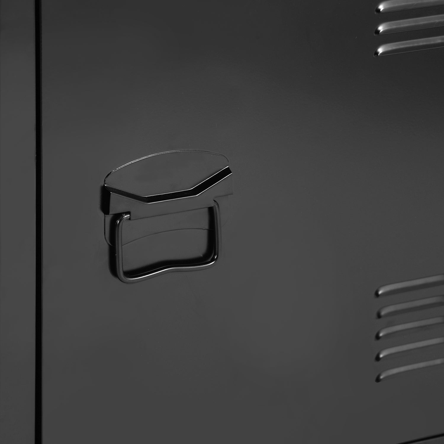 - Dieses Metallmöbel besteht aus drei Türen, getrennt von einem Tablet und zwei großen Fächern im Inneren, um die Raumnutzung zu optimieren. Die Objekte können jederzeit korrigiert und leicht zugänglich gemacht werden.