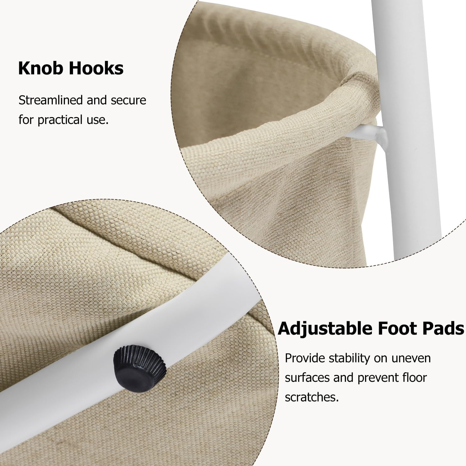 Runder Couchtisch, Beistelltisch mit Stoffkorb, Couchtisch mit Stauraum, Wohnzimmertisch, moderner Beistelltisch, Möbel für kleine Räume, zweistöckiger Couchtisch, Beistelltisch mit Metallgestell, Aufbewahrungskorb aus Stoff, Mitteltisch fürs Wohnzimmer, Couchtisch, minimalistischer Couchtisch, Couchtisch mit einfacher Montage, weiß-kamelfarbener Tisch