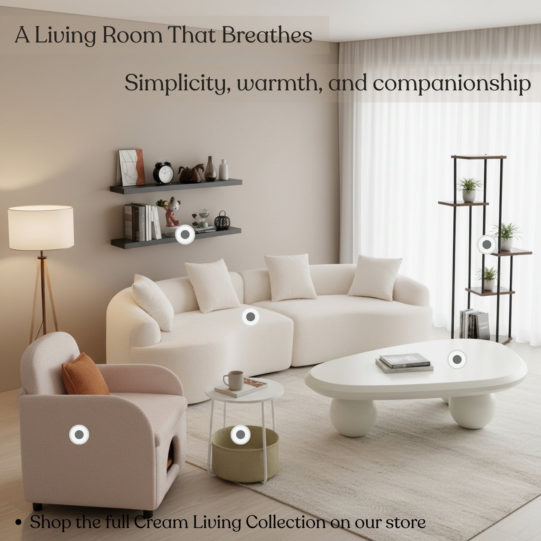 Entdecken Sie die Essenz von Ruhe und modernem Wohnen mit dieser minimalistischen Wohnzimmerkollektion. Jedes Stück verkörpert klare Linien, sanfte Texturen und ausgewogene Proportionen – geschaffen für ein harmonisches und aufgeräumtes Ambiente.