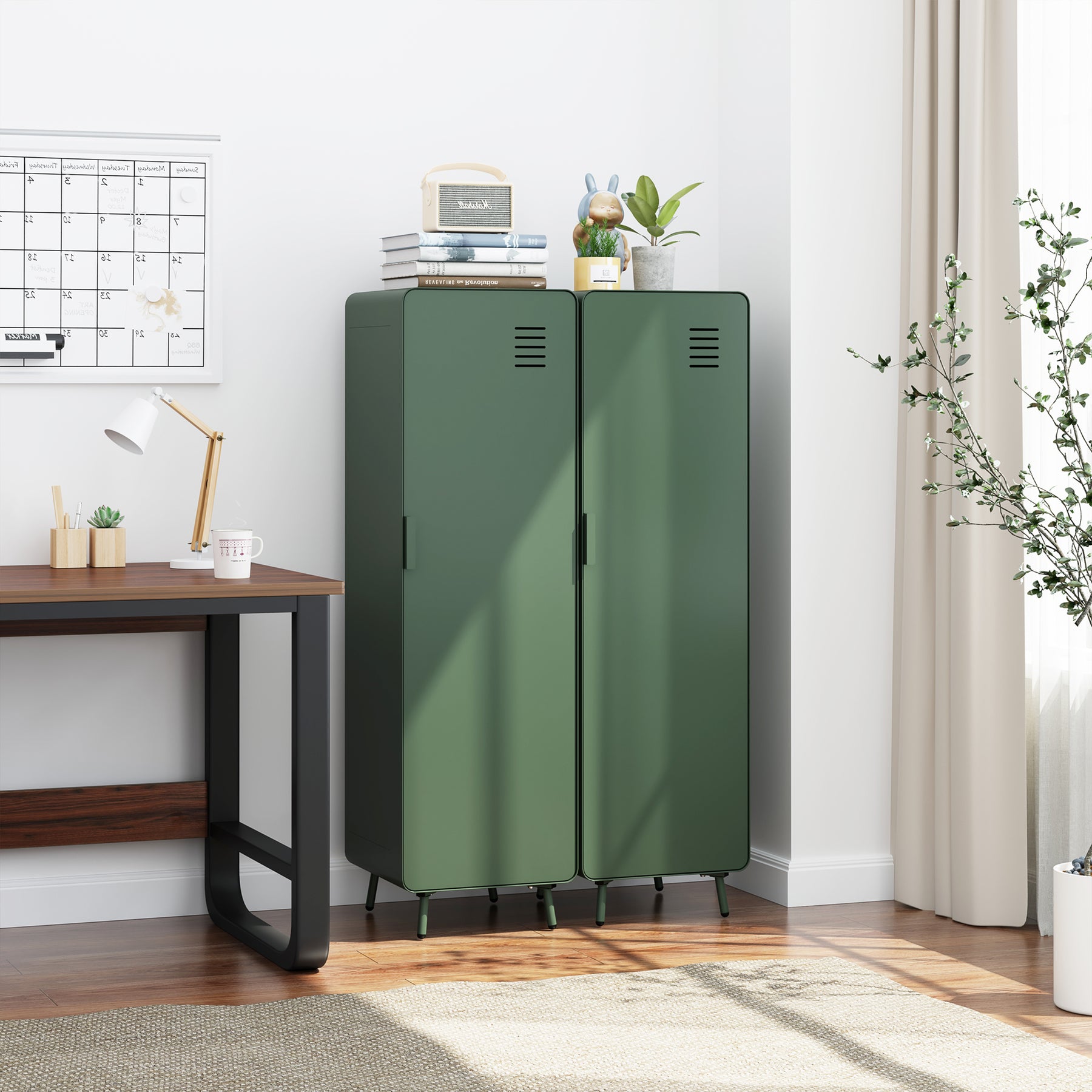 - Hohes und platzsparendes Design: Mit einer Höhe von 54 Zoll und einer kompakten Stellfläche maximiert dieser freistehende Spind die vertikale Aufbewahrung – perfekt für kleine Wohnungen, Eingangsbereiche, Studentenwohnheime oder Gemeinschaftsräume.