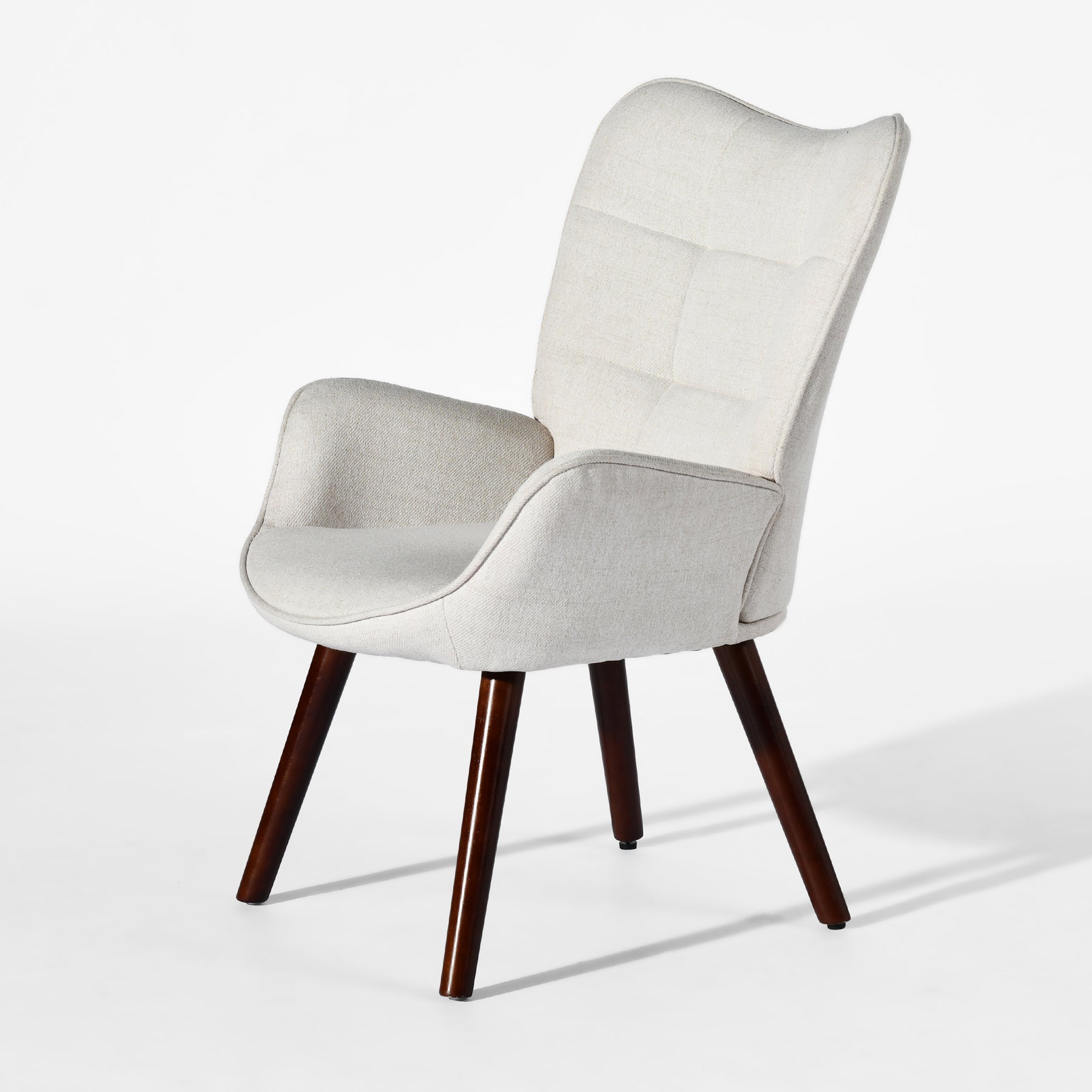 FurnitureR Ohrensessel mit Knopfheftung für Schlaf-/Wohnzimmer, ergonomischer Sessel mit hoher Rückenlehne, Stoffbezug, Beige/Walnuss