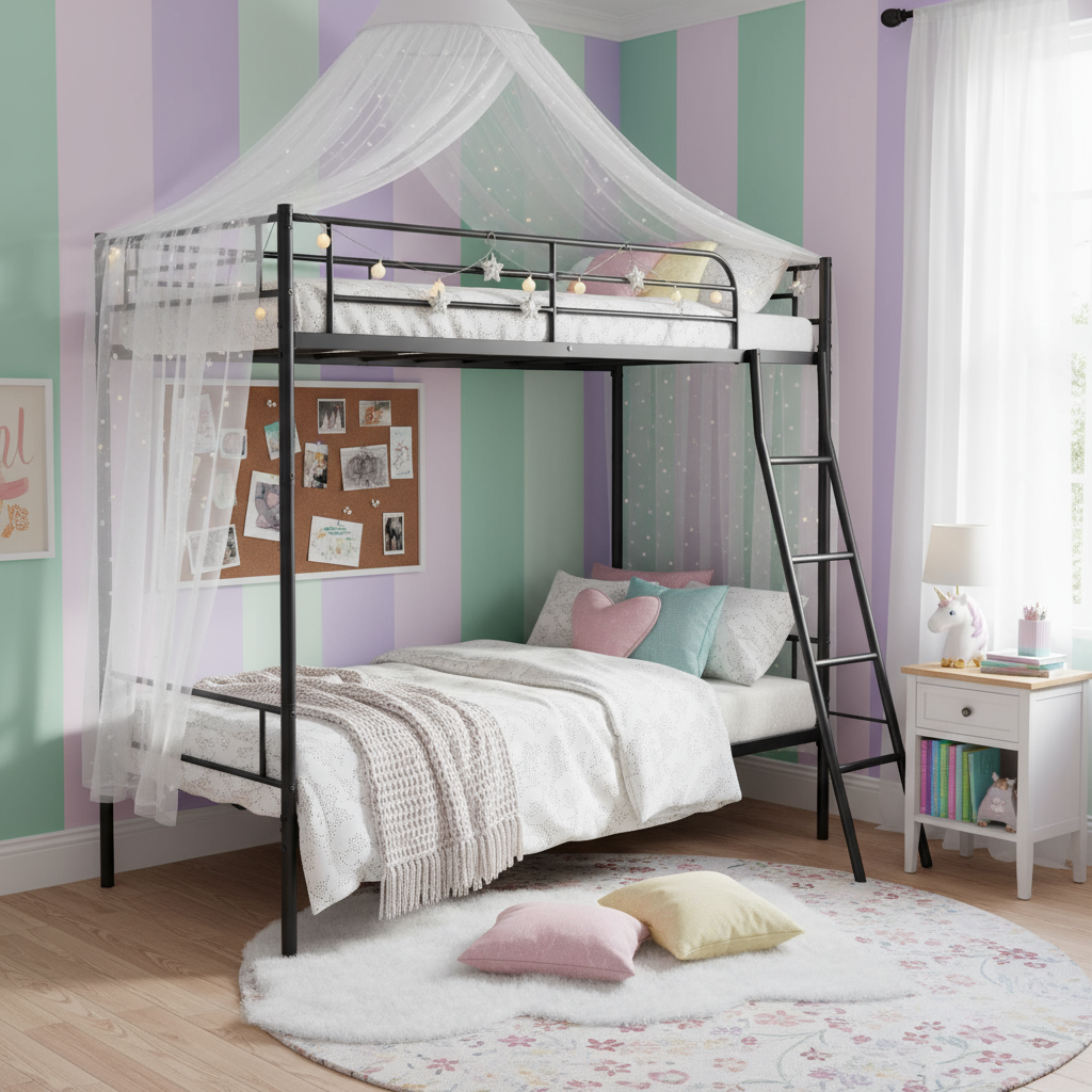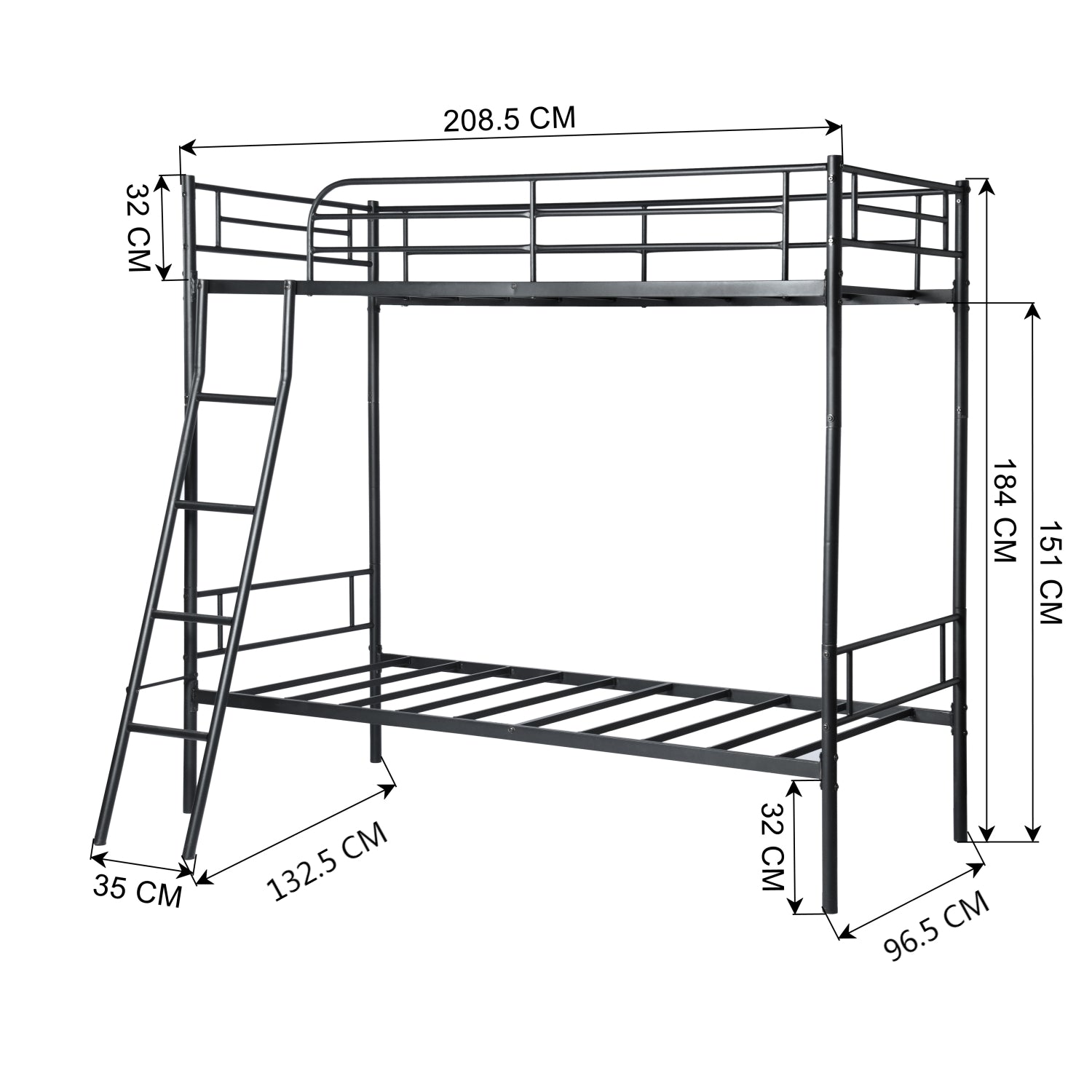 1-Lit Superposé Noir, modernes Design, Material und robustes Metall, häusliche Nutzung, Komfort und Raumgewinn