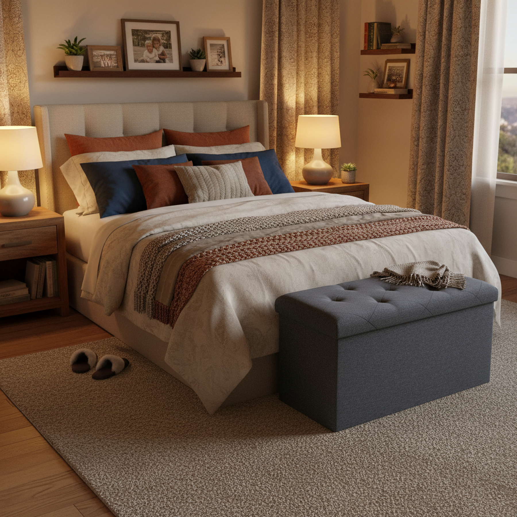 Beyond its chic appearance, this ottoman boasts a generous storage compartment (interior dimensions: 28.7"×12.5"×14") that effortlessly tucks away clutter like blankets, pillows, toys, or shoes, helping you maintain a tidy space. When it comes to functionality, it’s a true multitasker—use it as a comfortable footrest after a long day, an extra seat for guests, or a chic bench at the end of your bed. It’s designed to fit perfectly at the foot of Twin, Full, and Queen beds (aligning with the 30" bed width noted), making it a practical addition to your bedroom setup.
