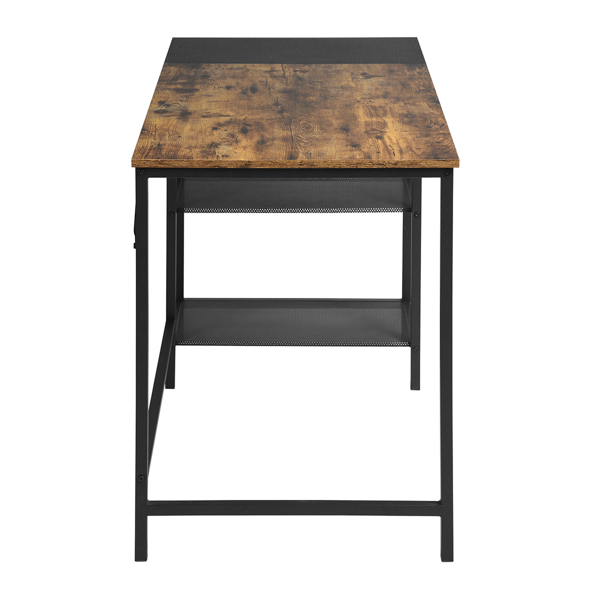 • Il s'agit d'un bureau de style industriel avec un plateau en bois brun rustique et un cadre en acier noir.