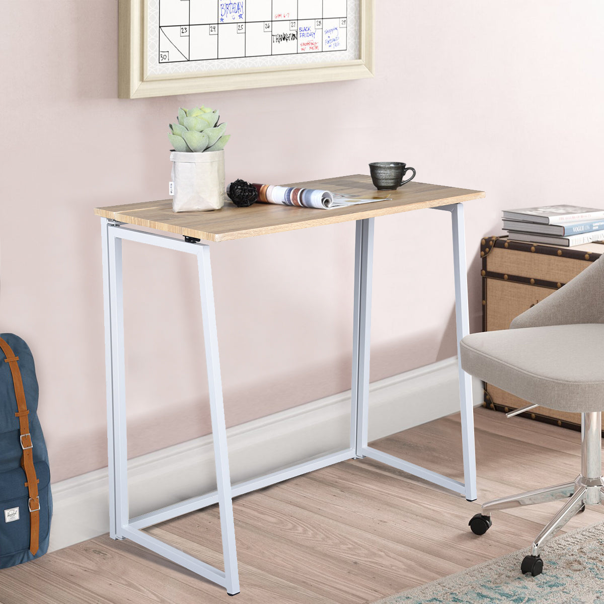 Bureau pliant FurnitureR, table pour ordinateur portable pliable de 80 cm (31,5 pouces), bureau d'étude compact et peu encombrant pour petits espaces, chêne