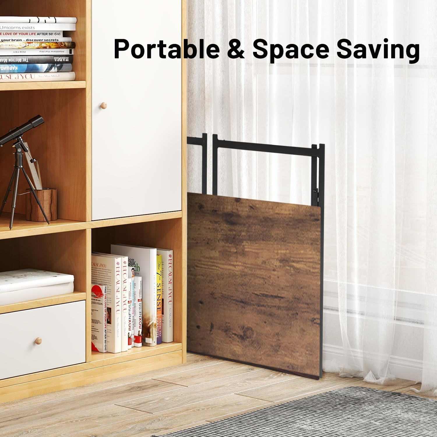 Bureau pliant FurnitureR, 100 cm (39,4 pouces), table d'étude/d'écriture peu encombrante, bureau d'ordinateur avec 8 crochets de rangement pour chambre, bureau à domicile, dortoir, marron