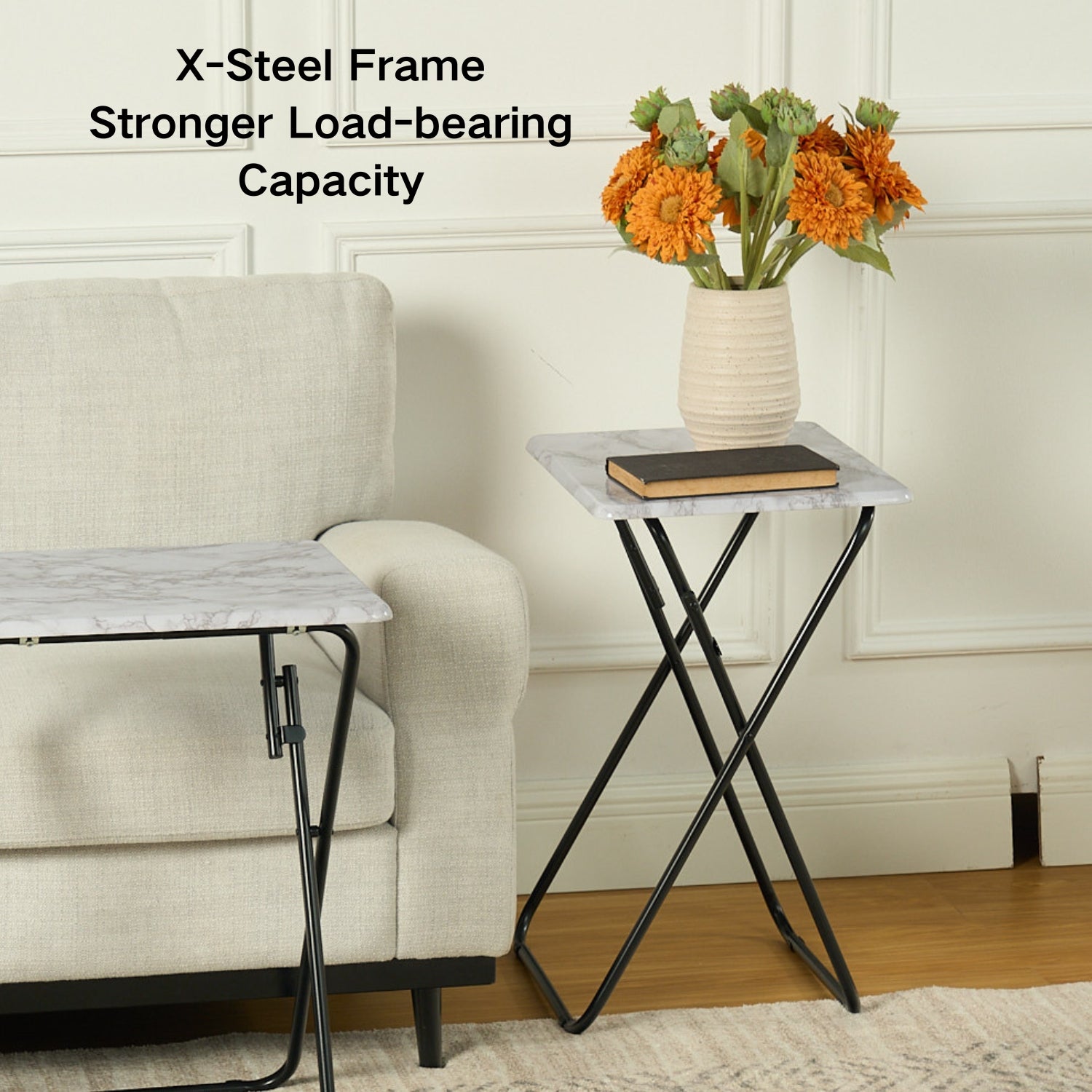 - Utilisation polyvalente : Idéales pour dîner, travailler ou prendre un en-cas devant la télévision, ces tables sont très polyvalentes. Vendues par lot de deux, elles sont parfaites pour accueillir plusieurs convives ou pour une utilisation dans deux pièces différentes.