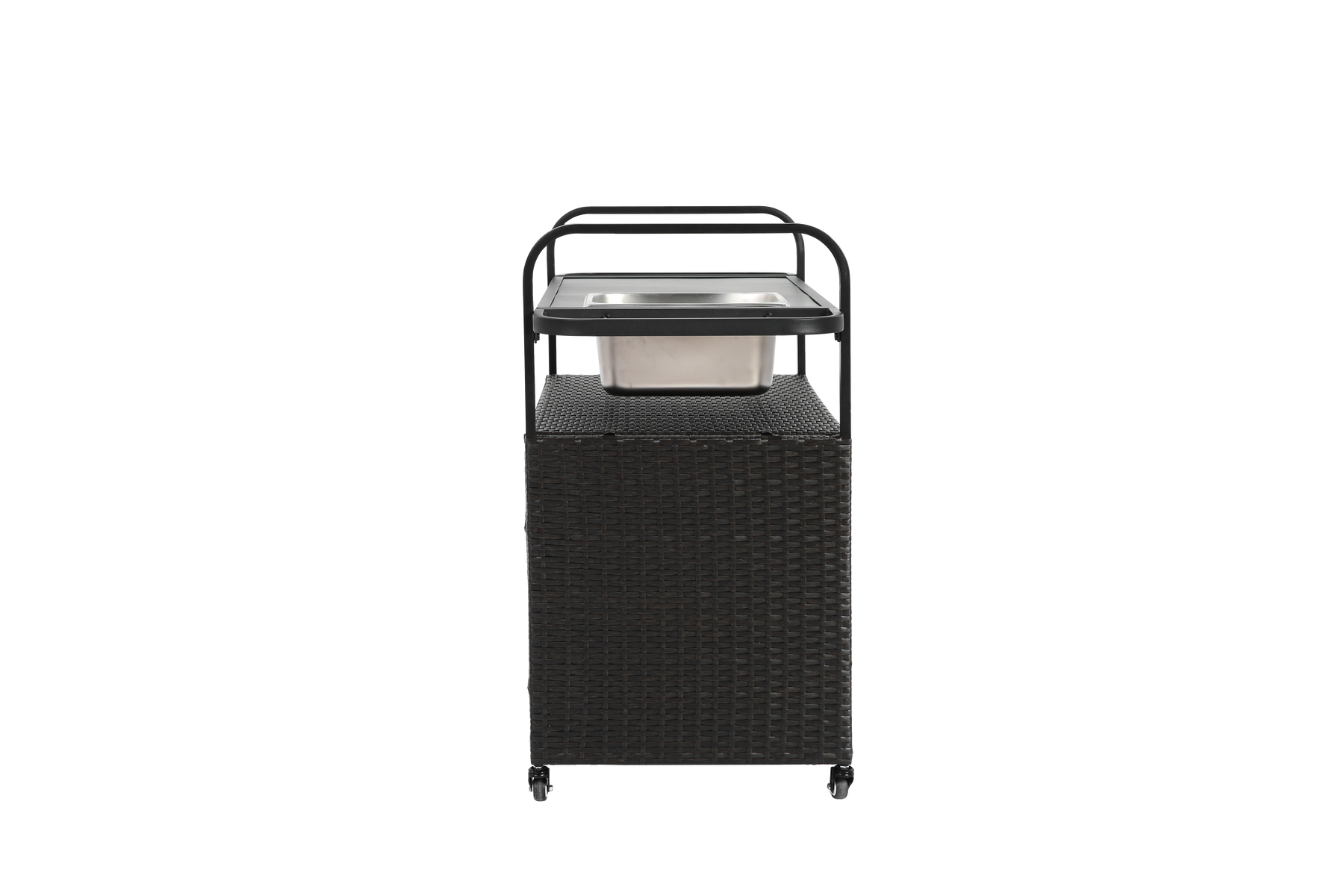 Grand espace de rangement pour toutes vos boissons et accessoires, idéal pour optimiser votre espace extérieur. Les étagères sont conçues pour accueillir bouteilles, verres et divers ustensiles avec facilité.