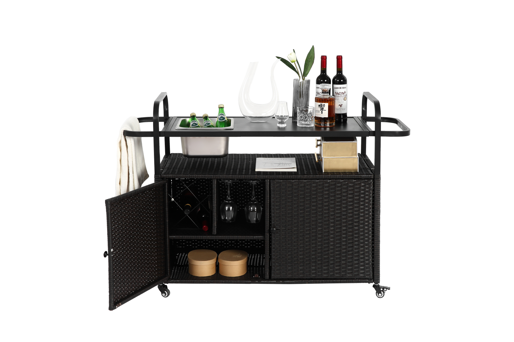 FurnitureR Chariot de Bar Extérieur, Design Moderne, Acier Noir, Utilisation Polyvalente, Solution de Rangement Économe en Espace